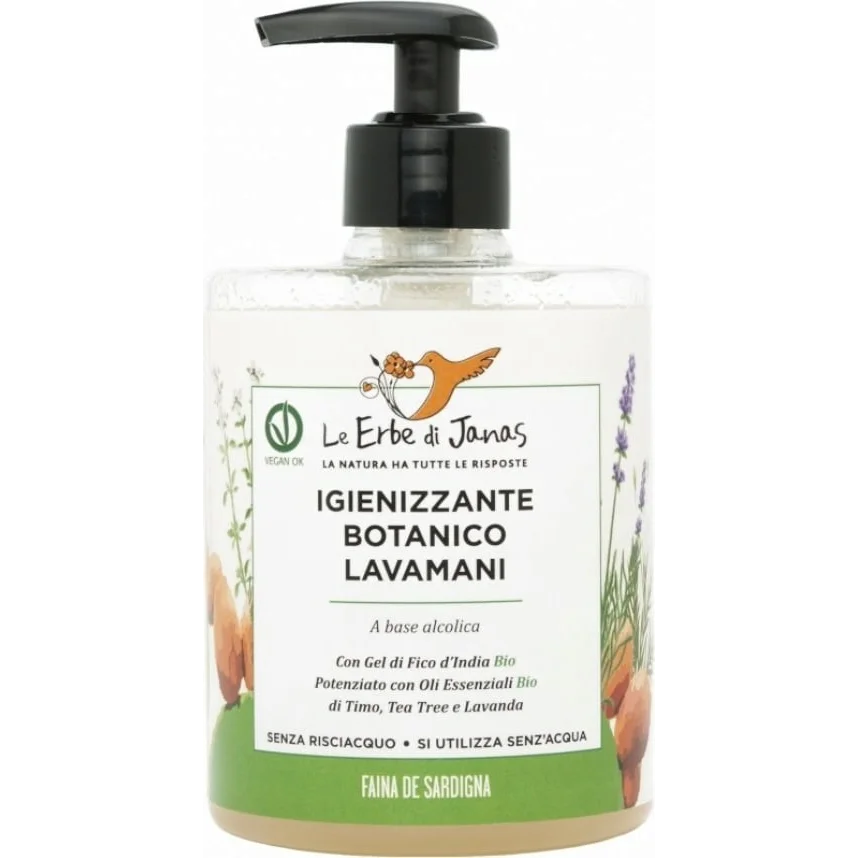 The Botanical Hand Sanitizer 500 ml by Le erbe di Janas has antiseptic and antimicrobial properties against viruses, bacteria, protozoa and fungi.