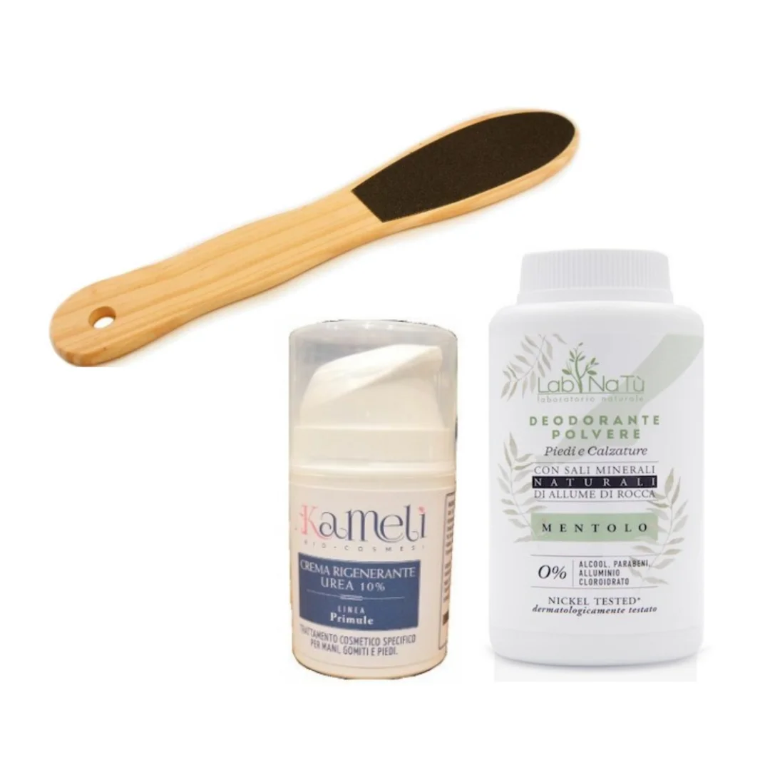 Complete with Kamelì 10% Urea Regenerating Hand and Foot Cream , which is an emollient, hydrating and regenerating treatment for hands, elbows and feet.